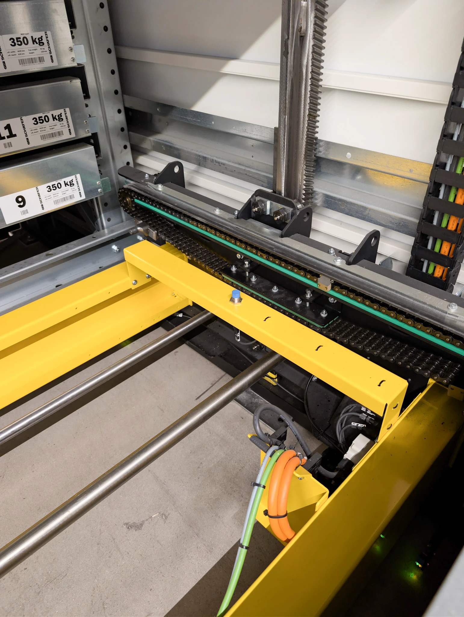 Jokaisessa koneessa on 60 hyllyä, joiden leveys on 4 025 mm ja syvyys 815 mm, mikä antaa 197 m² varastotilaa per kone. Yhteensä kolmen koneen kokonaisvarastotila on 591 m².